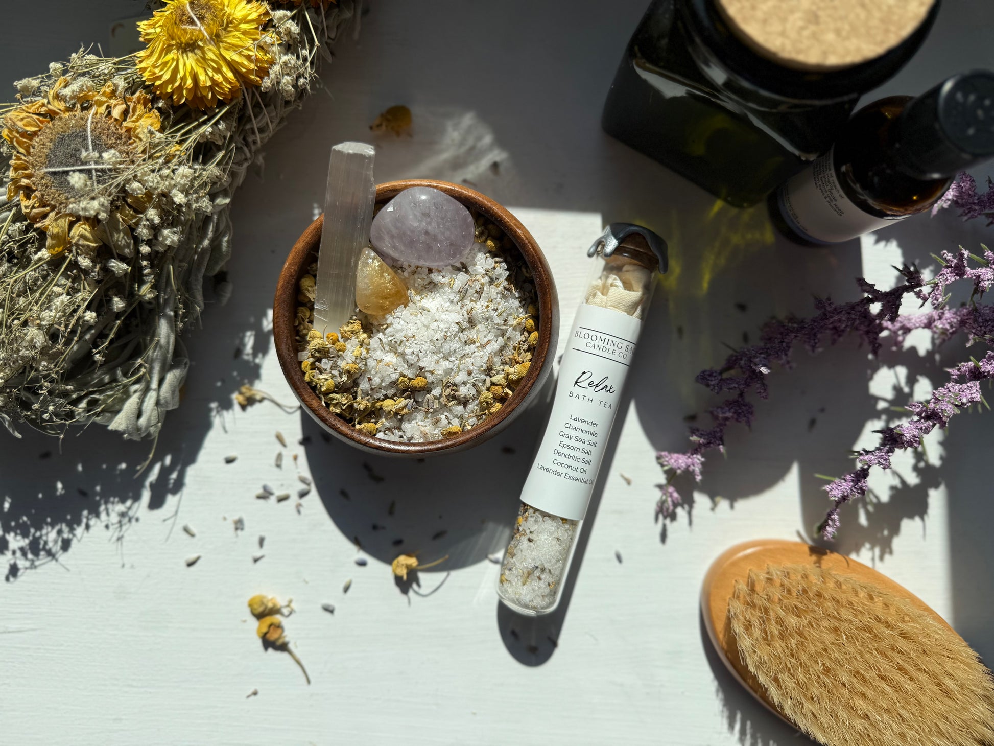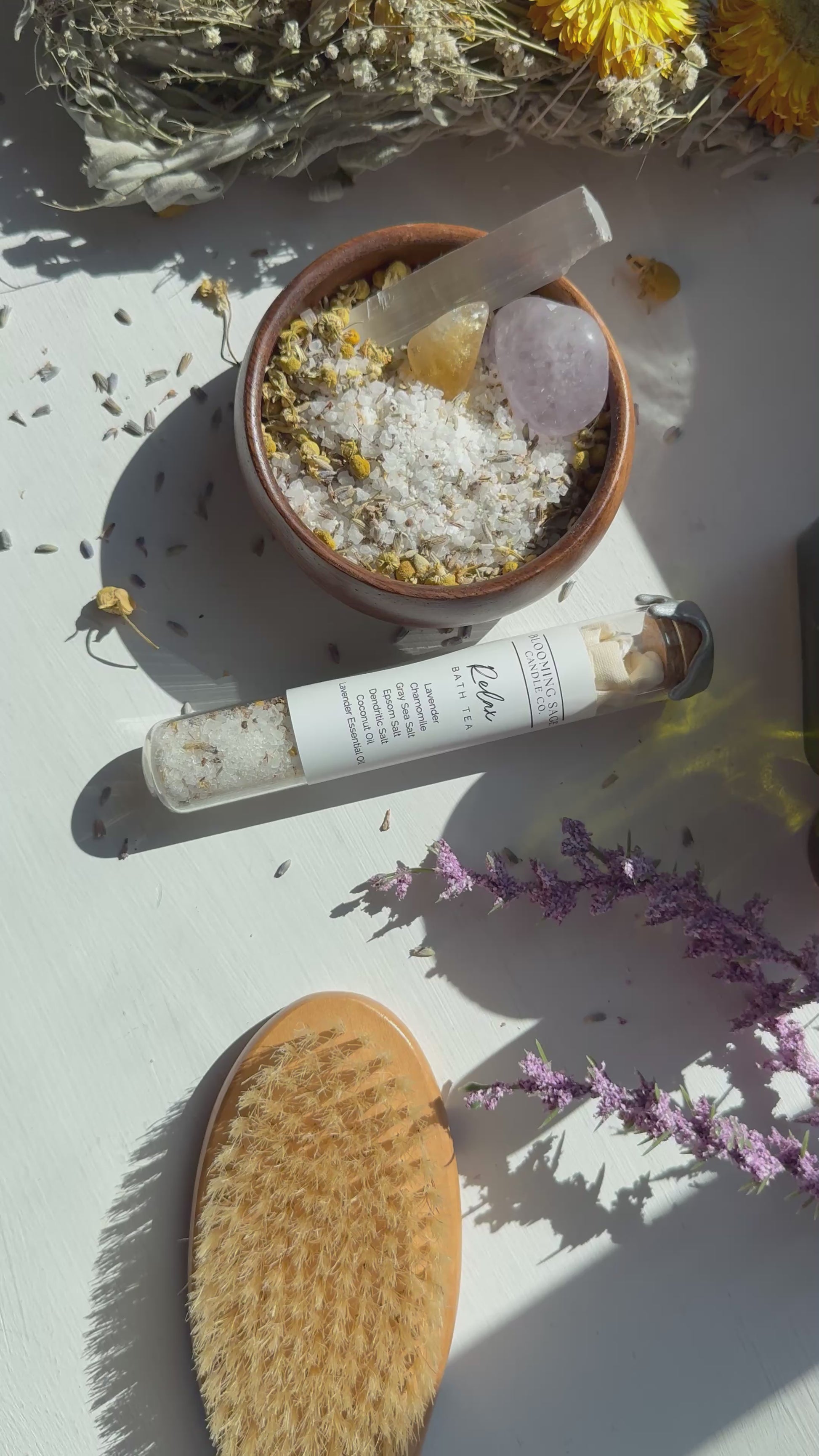 As each product was created, love and good intentions went into these products to give each of you the relaxing experience you need. Go into your bath with openingness and place crystals next to bath for extra support.