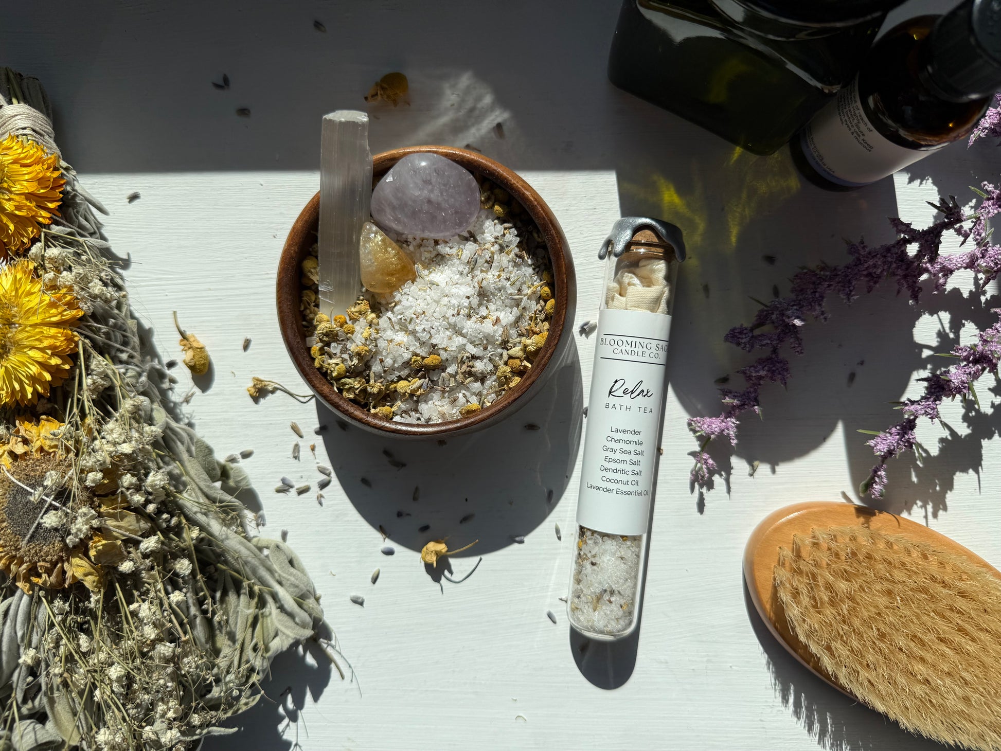 - Lavender Bath Tea – A spa-like soak in a sachet. Dried lavender and chamomile blossoms and mineral-rich salts transform your bath into a fragrant retreat, softening skin and easing the day’s stress.